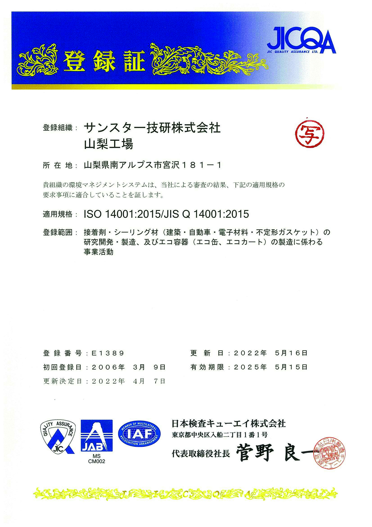 そうしたサンスター技研の取り組みから、地球環境に配慮した環境対策容器、VOC問題に対応したシーリング材の開発を可能にしました。