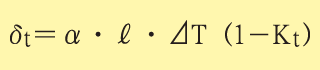 バットジョイントでは、温度変化ムーブメントδtは部材の拘束、端部拘束および面外変形による逃げを考慮すると(2.1)式で算定でき、その向きは引張り・圧縮方向となります。